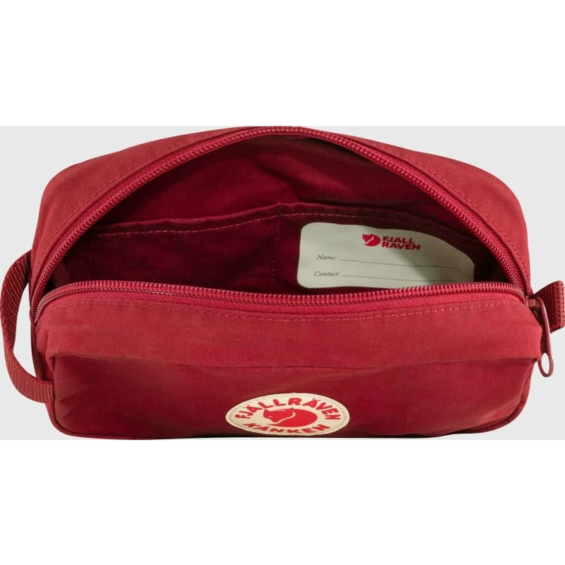 Kånken Gear Bag er en allsidig veske for utstyr til alt fra snører og verktøy du har, til hudprodukter og andre ting du vil ha organisert. Hovedrommet har en slitesterk glidelås, og det finnes en løkke på siden du kan bruke til å henge den opp. To åpne lommer på innsiden.