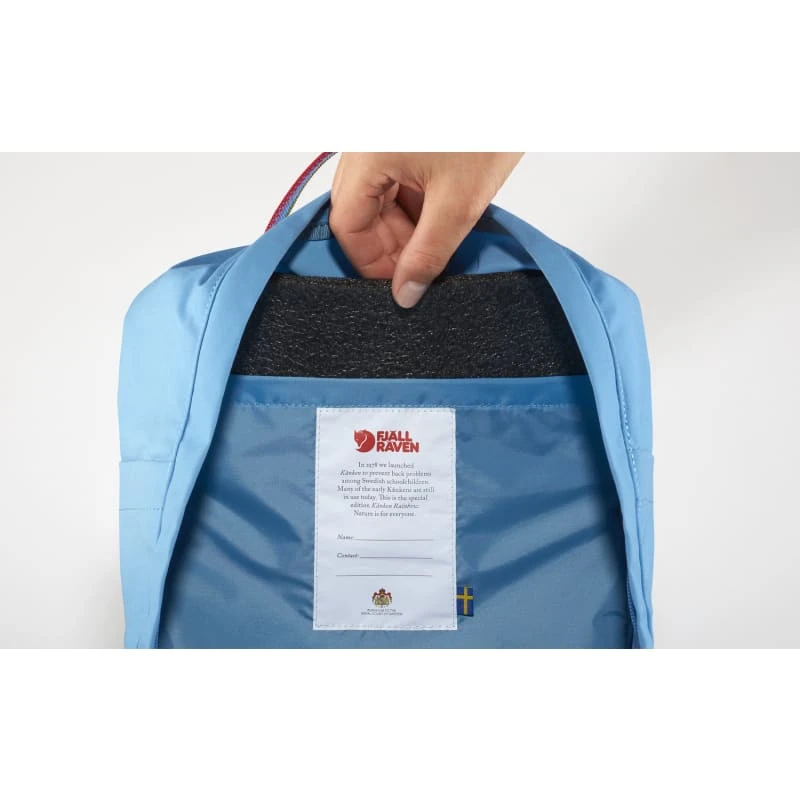 Spesialversjon av Kånken med regnbuestropper. En del av Arctic Fox-initiativet.