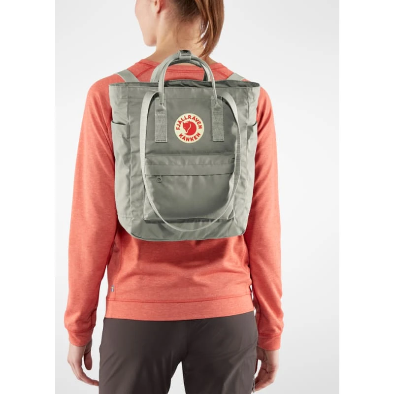 Kånken Totepack er en konverterbar versjon av Fjällrävens ikoniske ryggsekk, og kan enten være en ryggsekk på sykkelturen eller en skulderveske på den fulle bussen. Den har et hovedrom med glidelås og en innerlomme med en vattert bunn for en 13 tommers laptop. Sitteunderlaget bakerst i hovedrommet gjør at du alltid kan ta deg en pause, hvor enn du befinner deg.