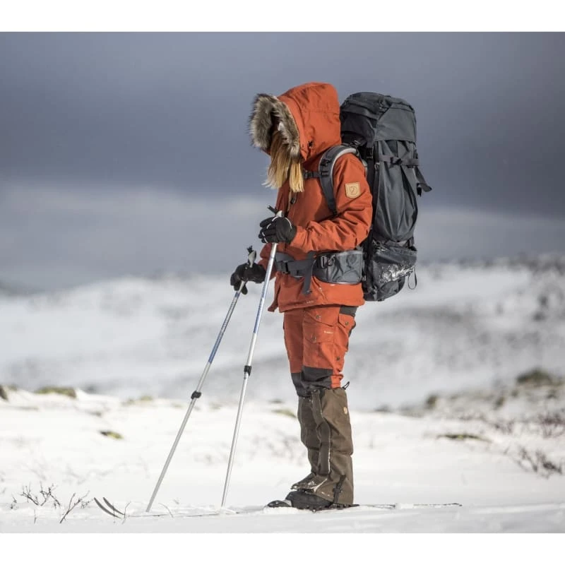 Fjällräven Kajka 65 er solid, komfortabel og fullspekket med funksjoner – til tross for det noe beskjedne utseendet er Kajka en avansert toppsekk i klassisk Fjällräven-ånd. Oppgradert med nyjusterte og forbedrede funksjoner og en innovativ, enestående treramme som påvirker miljøet betydelig mindre enn tidligere, samtidig om styrken og funksjonaliteten bevares. Bæresystemet er utviklet for jevn distribuering av ekstremt tung last, og det brukervennlige Perfect Fit -justeringssystemet gjør det enkelt å tilpasse til ulike kropper – og da snakker vi ikke bare om rygglengde, men også bredden mellom skulderstroppene. Det sjenerøse hoftebeltet gir en høy grad av bærekomfort på lange dager med full oppakning. Selve sekken er toppmatet og har snølås. Den har også en stor, vertikal åpning i fronten og enda en åpning i bunnen slik at det blir lett å få oversikt over innholdet. Den kan deles inn i en øvre og nedre del. Dermed blir det enkelt å holde fuktig og skittent utstyr separat fra det andre utstyret. Det er også praktiske glidelåslommer i topplokket, i sidene og på hoftebeltet. Topplokket kan tas av og brukes som midjeveske eller brystveske når du ønsker å holde et godt øye med verdisakene dine. To kompresjonsstropper på hver side og de integrerte stengene gir jevn og effektiv komprimering uten at sidelommene blokkeres. Festepunkter på topplokket og i bunnen på sekken. Fløyte på bryststroppen og regntrekk med refleks. Kajka lovprises av turgåere over hele verden, samt av verdenspressen.