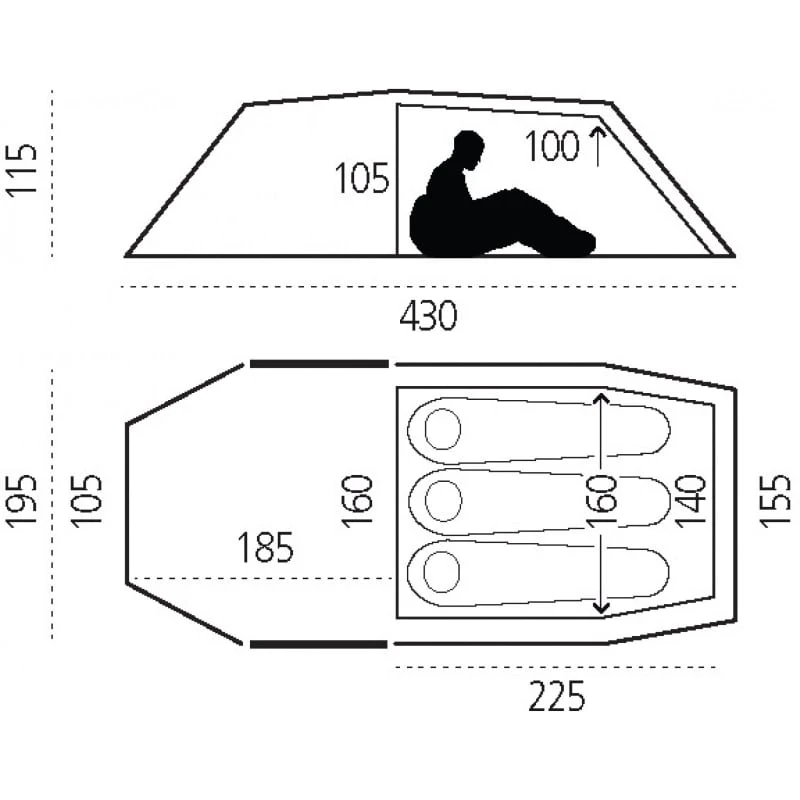 | Innertelt mål: | 225 x 160 x 105 cm |