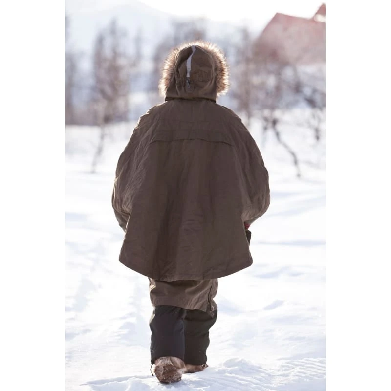 Fjällräven Luhkka Cape er en smart, knelang cape inspirert av samenes allsidige og praktiske Luhkka. Fungerer som ytterplagg alene høst og vår og som forsterkningsplagg utenpå vanlige vinterklær på kalde vinterdager – akkurat slik samene alltid har brukt den. Utenpå vanlige skallplagg gir den fleksibel beskyttelse mot kulde og kald vind, og eventuell snø er lett å riste av når man skal inn. Materialet er slitesterk, vind- og vannavvisende G-1000 med et tynt, syntetisk fôr for ekstra varme.
