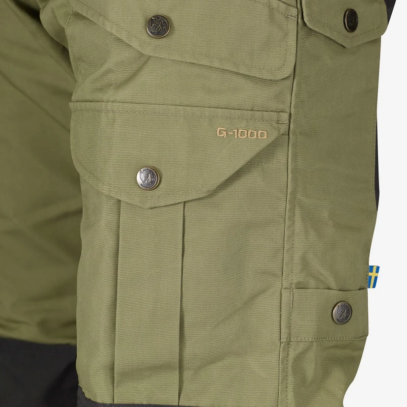 Slitesterk turbukse for eventyr til fjells og til skogs. Fremstilt av det slitesterke og vannavvisende stoffet G-1000® med et dobbelt lag over sete og knær. Normal midje og passform med figursydde knær. Seks praktiske lommer, blant annet kartlomme og økselomme. Elastisk stroppejustering med trykknapper ved benavslutningen. Utstyrt med knebeskytterlommer (tilbehør). Men’s.