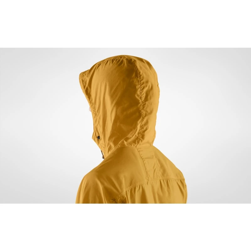 Lett, myk og pakkbar vindjakke i vokset polyamid / økologisk bomull. En praktisk jakke for en rekke typer friluftsliv – fotturer, padling eller sykling. Justerbar hette og tre glidelåslommer for småting. Mansjetter på ermene med elastisk kant. Vokset for å gjøre jakken vannavstøtende i lett regn.