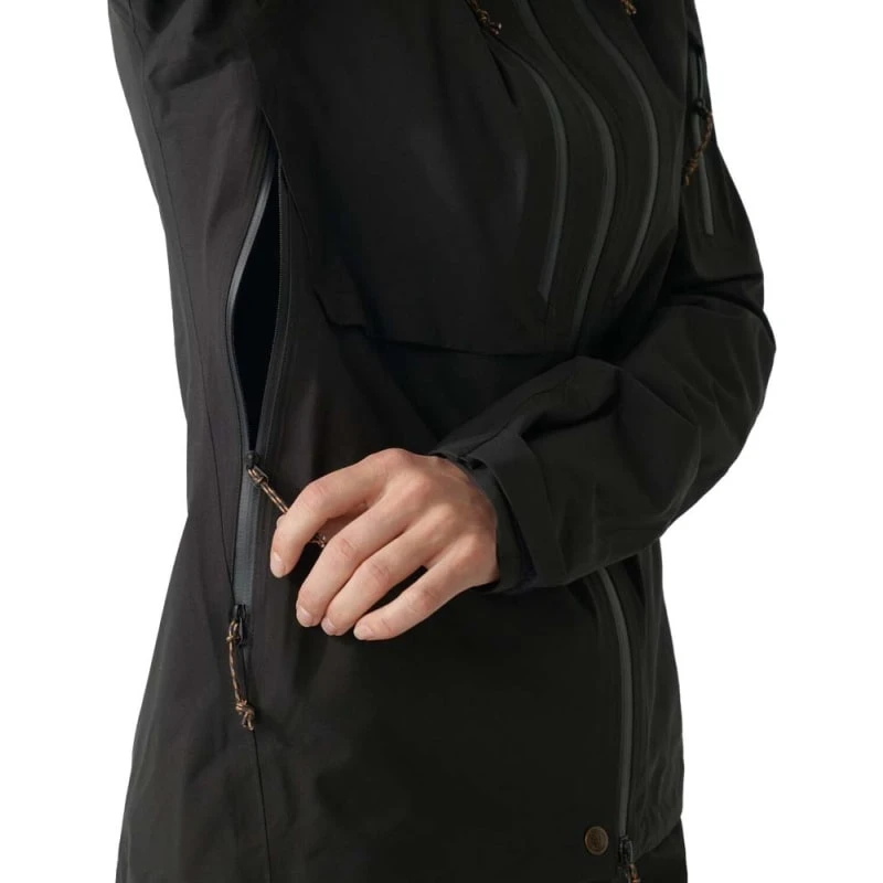 De romslige brystlommene med skjult belg kan nås selv når du har på deg klatresele eller ryggsekk med hoftebelte, og de har innvendige lommer i elastisk netting som holder mobiltelefonen og andre småting på plass. Toveis glidelås i sidene slipper ut overflødig varme. Nederkanten kan justeres med en snor, og mansjettene med borrelås.