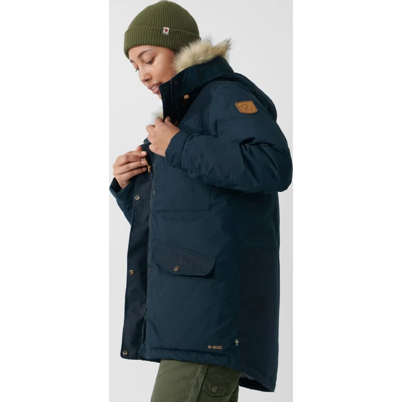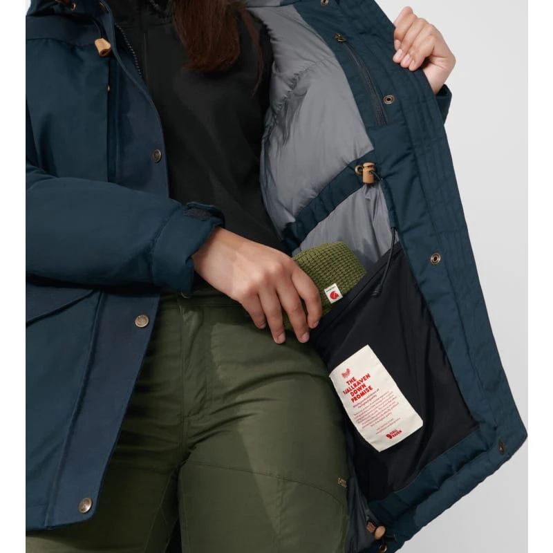 Varm og slitesterk dunjakke til de virkelig kalde vinterdagene. En klassisk, lang modell med yttermateriale i holdbart G-1000 og ekstra slitesterkt G-1000 HeavyDuty over skuldrene og setet. Fyllet er sporbar dun av høy kvalitet, som er forsterket med syntetisk fyll over skuldrene og på albuene for ekstra holdbarhet mot vær og slitasje. Perfekt for vinteraktiviteter med lav intensitet i skarpt vintervær, når ingenting skal få hindre deg i å gå ut. Snittet er feminint og romslig på en og samme tid, så det er nok av plass til isolerende lag under.
