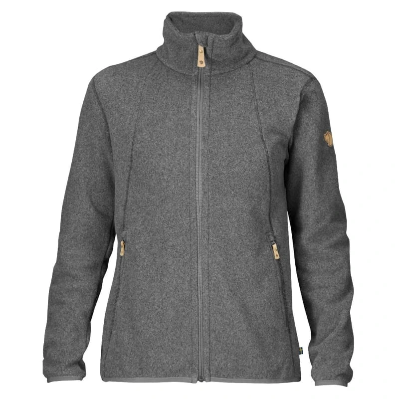 Behagelig fleecejakke av gjenvunnet polyester med lett melert utseende. Vid passform, høy krage og to romslige håndlommer.